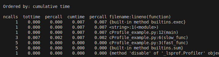 **percall**(第一個):tottime / ncalls,平均單次執行時間。
