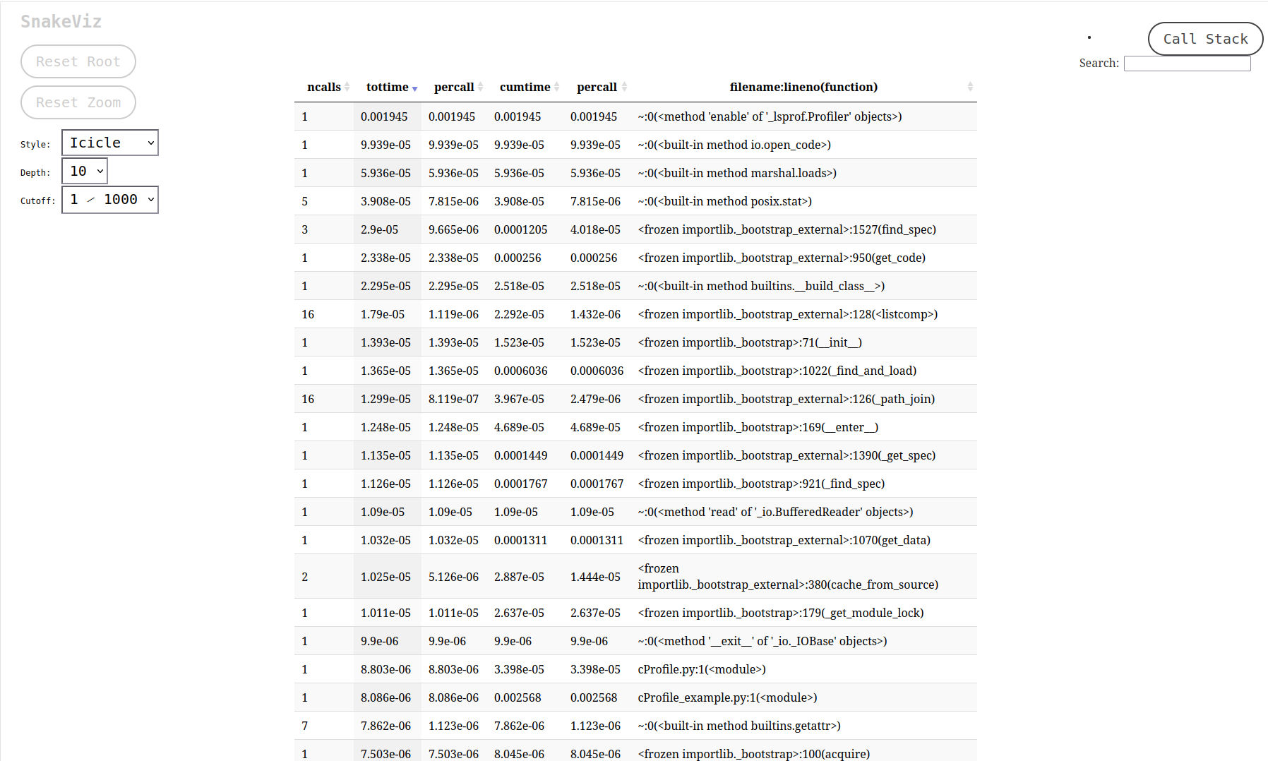 **percall**(第二個):cumtime / ncalls,整個呼叫鏈的平均耗時。