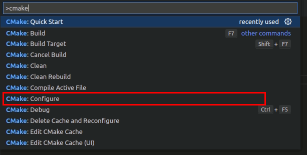 之後選擇configure 根據布置的CMakeLists.txt的內容布置環境連接,之後有改過檔案內的內容後都需要重新再configure一次