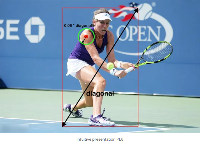 - 描述→PCK 衡量的是預測關鍵點與真值關鍵點的距離是否小於某個閾值,若距離小於閾值,則認為該點的預測是正確的。