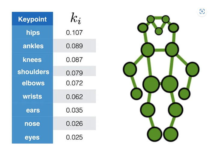 - OKS 為所有關鍵點的加權平均值。