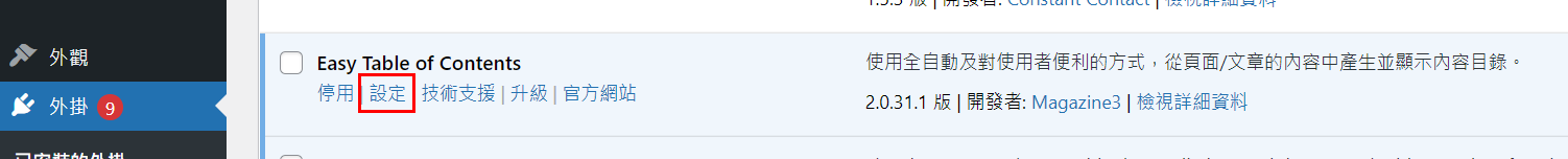 本來以為這些功能都需要一個一個的慢慢設定,後來才知道wordpress中有外掛可以快速達成此功能,這外掛的名稱就叫做 Easy table of contents